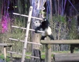 一边是野生环境遭到破坏,大熊猫在刀斧声中苦苦寻找家园;