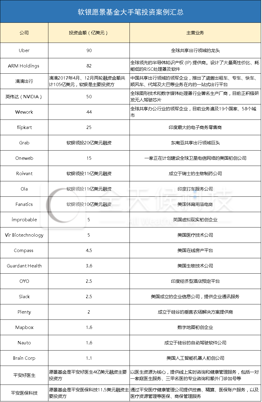从愿景基金目前为止已公开的投资案例看,平安系公司只是其投资图谱中的“小菜一碟”。尤其是在2017年,愿景基金每次单笔投资的额度之大常常令业界瞠目。