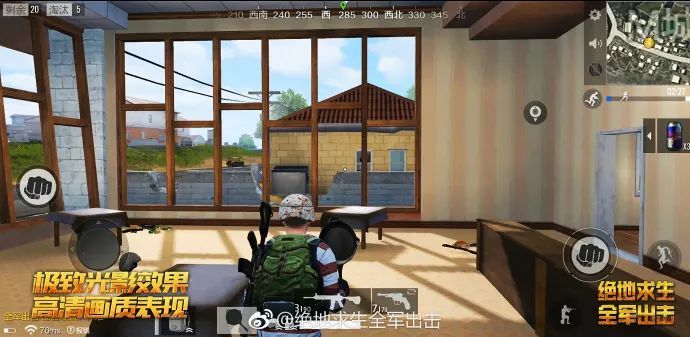 《绝地求生 全军出击》由天美工作室打造,游戏中的场景、房屋和各种道具物品都基本继承端游,游戏地图采用了与端游一样的地图,这样的设定对于端游老玩家来说无疑是一个好消息,玩过端游的老玩家不用再花费大量的时间再去熟悉新的场景建筑和枪械,上手游戏的难度大大降低。