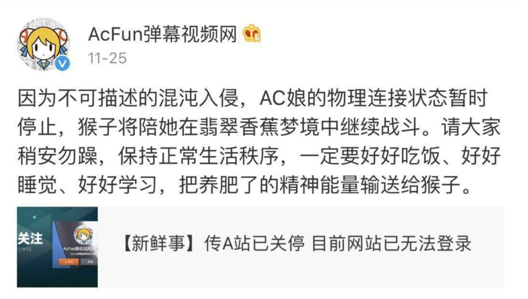 出乎意料的是,仅数月后,A站再次宕机。2017年11月25日到27日,用户再次回想起了被“A站关停”支配的恐惧。而A站发布的一则“二次元”公告,在很多用户看来未免显得有些不合时宜。用户希望你解决问题,而不是卖萌打岔。