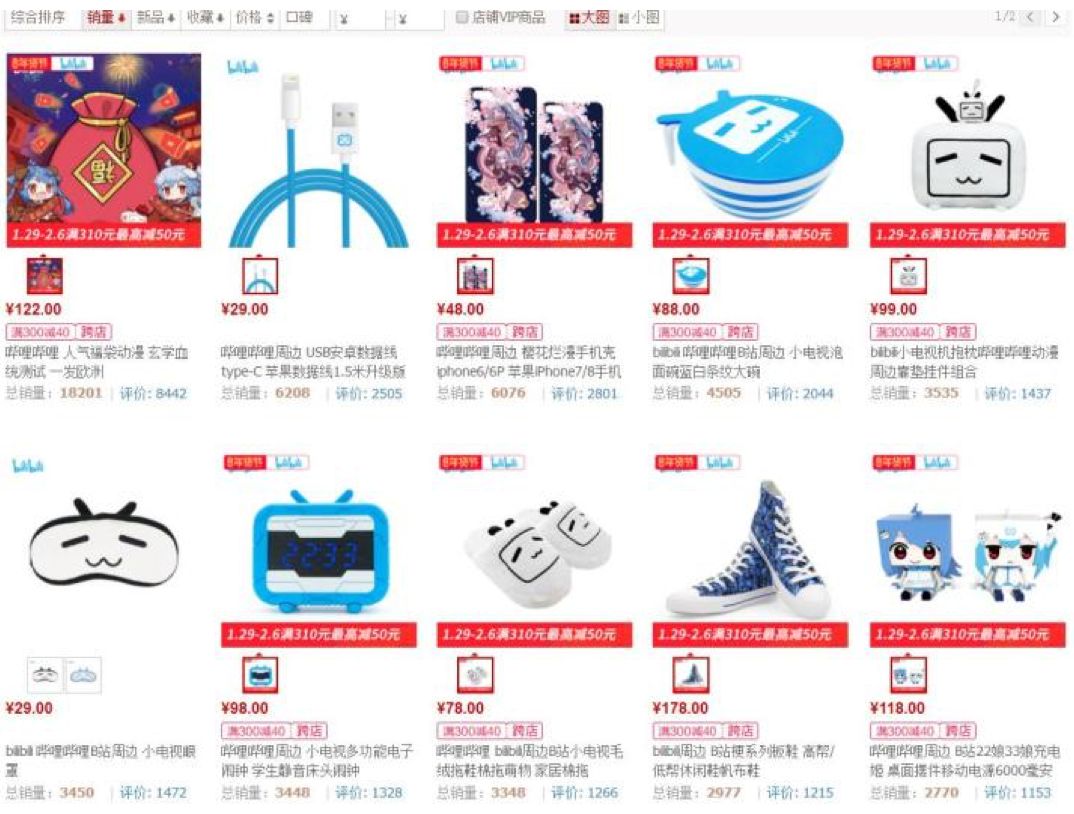即便是在收入里微不足道的周边,B站都比“有情怀”的A站卖得好太多。