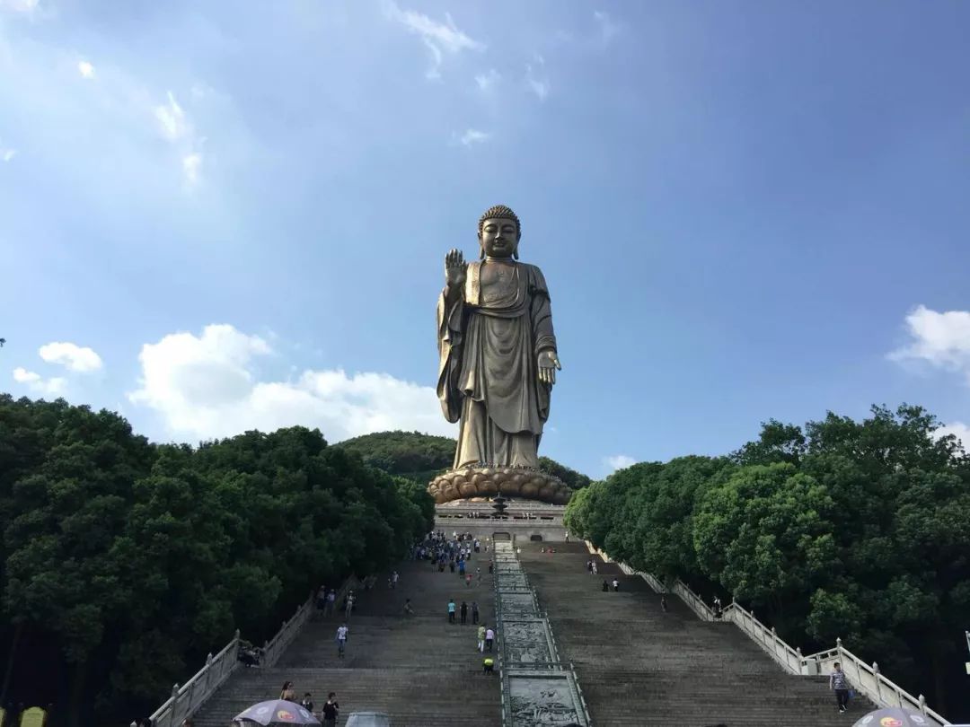 大佛经历了三年打磨,于1997年落成,气势雄伟、庄严,是当时世界上最大的露天释迦牟尼像。无中生有的佛与寺,使原本籍籍无名的灵山成为国内宗教旅游的标杆,今日的灵山。世纪之初,解决了温饱问题之后,国人开始将目光转向表征精神体验的文化与旅游消费,拉练式的旅游团日趋式微,自驾游与自由行方兴未艾,灵山胜境二期佛教文化园开始规划,其核心产品是音乐动态群雕“九龙灌浴”。2003年7月,非典的阴霾刚去,佛教文化园开门迎客。在二期的基础上,又有了后来的建筑奇观“灵山梵宫”,融合了中国佛教石窟艺术及传统佛教建筑元素。它作为世界佛教论坛的举办地,并非庙宇,而是一座殿堂,具备论坛会址的功能,2012年之后成为该论坛的永久会址。