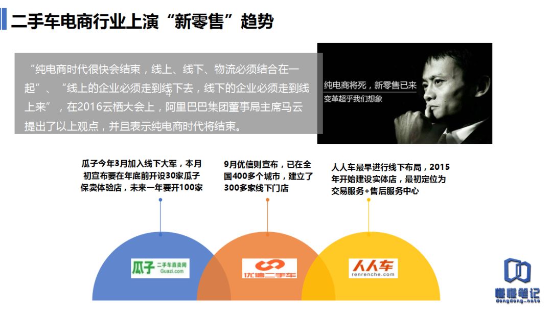 懂懂笔记联合企业头条统计发现,人人车早在2015年6月就进行了线下门店的布局;瓜子在2017年3月就开始了线下布局,提出要开设100家体验店;优信9月宣布已开设300多家线下门店,计划2020年将扩张到2000家。