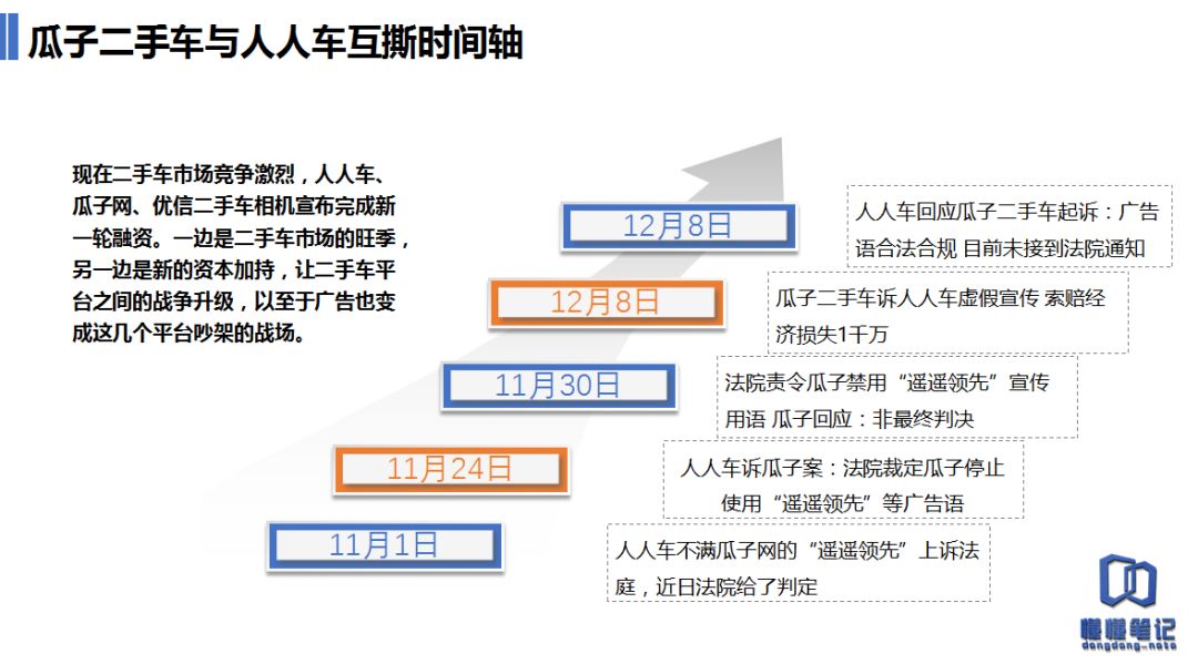 然而,各个平台都知道广告有用,也都舍得烧钱,这么比下去平台压力无疑很大。索性,瓜子和人人在去年11月将广告战打到了法院,先是人人车以瓜子广告语中带有“遥遥领先”、“全国领先”等容易误导消费者的字样,以涉嫌不正当竞争为由将后者诉至法庭。