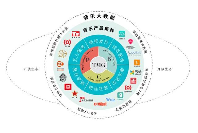 在太合音乐构建的生态版图中,从用户服务层到平台服务层,从音乐产品集群到音乐大数据,再到开放生态,太合为分、子公司及艺人搭建了一整套的服务体系。