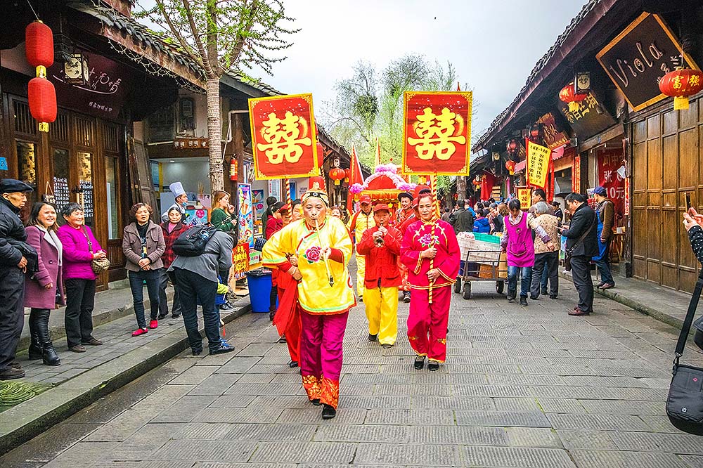 磁器口在重庆市区内,昔日热闹非凡的水陆码头,如今仍保存了较为完整的古建筑和千年不变的浓郁纯朴的古风,令其成为重庆江州古城的缩影和象征。除此之外,磁器口古镇还开发了榨油、抽丝、制糖、捏面人、川戏等传统表演项目和各种传统小吃、茶馆等,每年春节举办的瓷器口庙会四古镇最具特色的传统活动,吸引数万市民前往参与。图片来源:视觉中国
