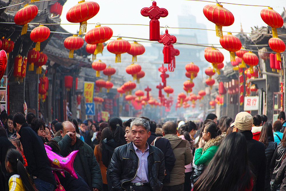 平遥中国年,每年腊月二十三至正月十六在平遥古城举行。春节古城的节庆活动非常丰富:状元祭孔表演;猜灯迷;赏灯会;社火表演;民乐演奏;烟火晚会……还有让人想想就垂涎不已的平遥牛肉!图片来源:东方ic