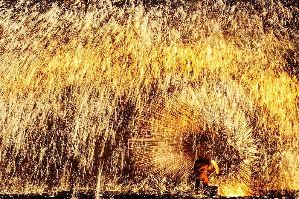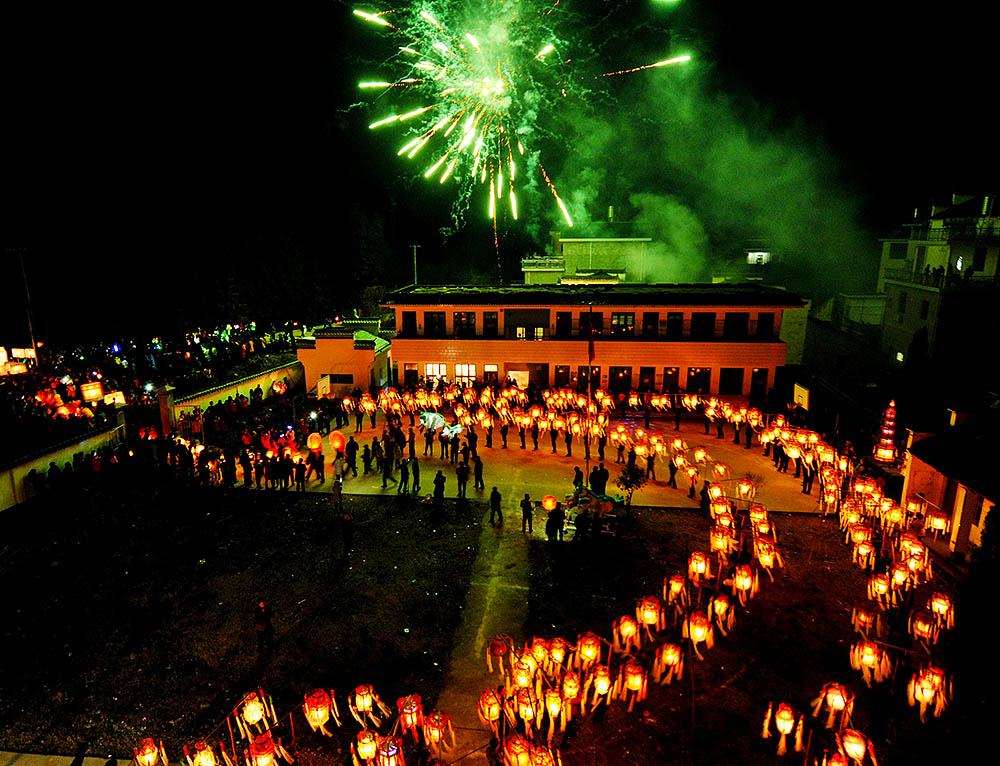 位于河北省张家口市蔚县西部的暖泉古镇历史悠久,文化底蕴深厚,因镇中心有一四季长流、冬暖夏凉的泉水而得名。新春之际,暖泉的大街小巷里的年味儿浓郁,游人如织,大红灯笼高高挂起,红色光芒点缀着朦胧夜色,大大的红“福”和剪纸把古镇装饰一新。除了花灯会、剪纸等传统民俗文化外,最具年味、最吸引游人的就是暖泉镇传承了300多年绝技——“打树花”。图片来源:视觉中国