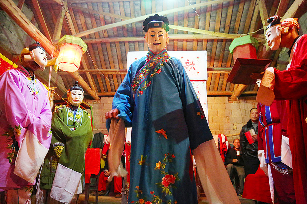 皖南池州贵池的刘街、桃坡、茅坦都是普通的名字,但傩戏使那里的过年气氛一点都不普通了。傩戏的一切都很神秘,请傩神的只能是男丁。如果你是女性,想看请神仪式要经过一番交涉。傩戏要到初七晚上才能看到,表演的还是男丁,但女性有权利当看客了。图片来源:视觉中国