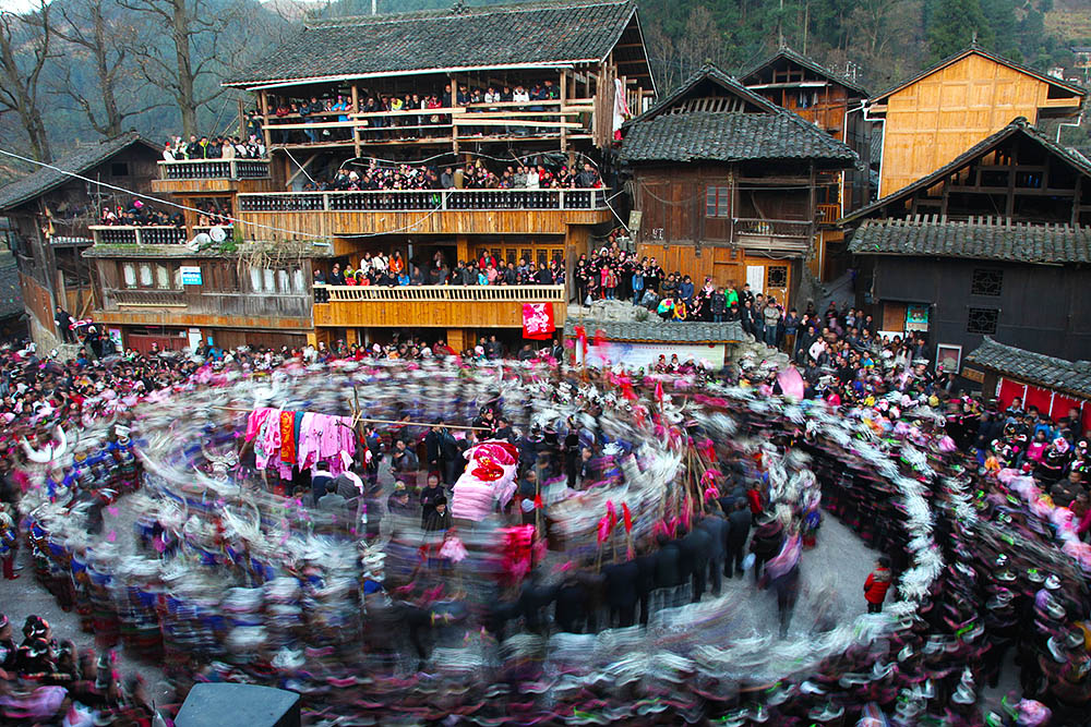 西江千户苗寨是中国最大的苗族聚居村寨,10余个依山而建的自然村寨错落有致。同时,新年肯定少不了苗人的传统舞蹈,他们人人能歌善舞,苗族数千年的历史文化在西江得到了最原始的保存。图片来源:视觉中国