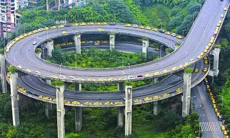 传说中最让重庆人“绕起来脑壳昏”的一座立交桥,不仅路牌考验司机的判断力,纵横交错的路线也在撩拨静途经者的眼力和方向感。