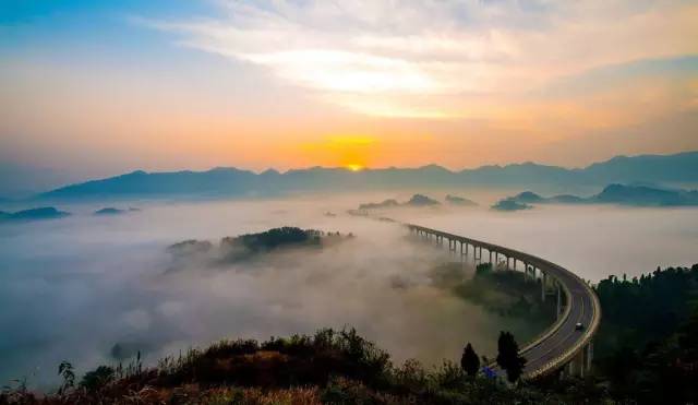 天子窖大桥(周家山大桥)位于重庆渝北区古路镇。大桥的云海、日出、晚霞、星空非常壮美,被许多人成为“小牛背山”!