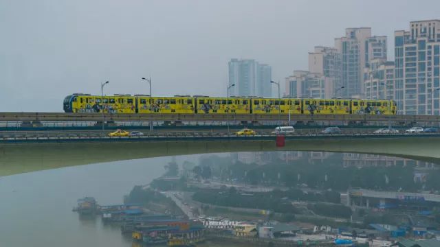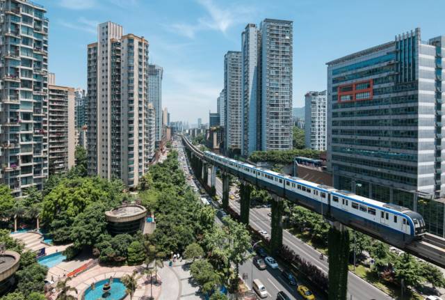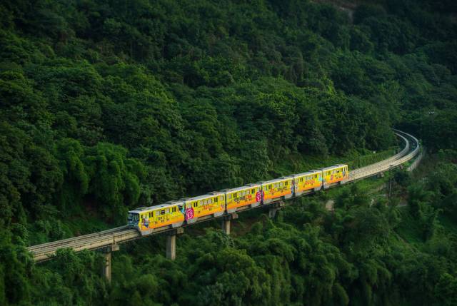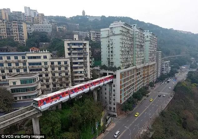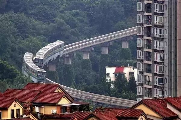 重庆轻轨,翻得过高山,穿得过森林,跨得过峡谷,进得了楼房,出得了站台,一会遁地入洞,一会跨江上天……