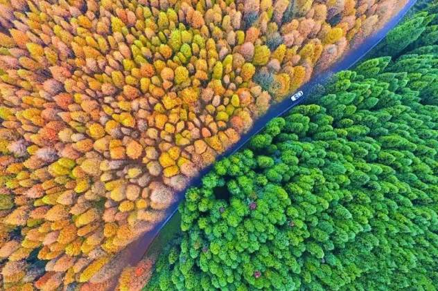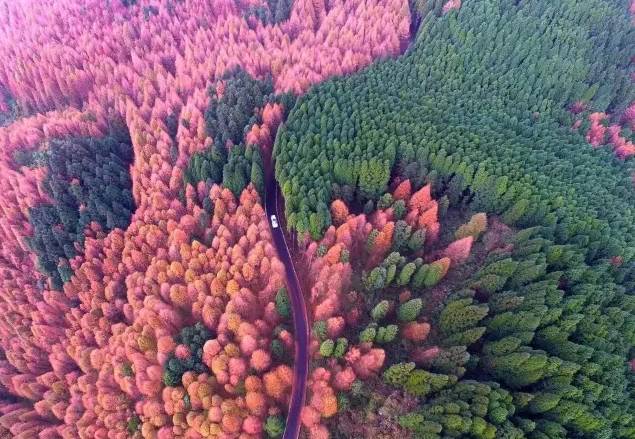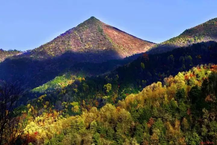 绚丽多彩的秋叶在山头蔓延开来,举目望去呈现出一片五彩斑斓,这里每年秋天都会举行彩叶节。