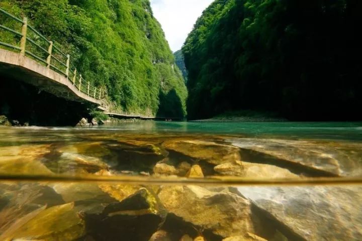 阿依河有秀美的山,湛蓝的水,深邃的史,浓郁的情。河内水质清冽,有深有浅,游鱼随处可见。原始古朴,清幽秀丽,使得阿依河成为“巴渝新十二景”之首。