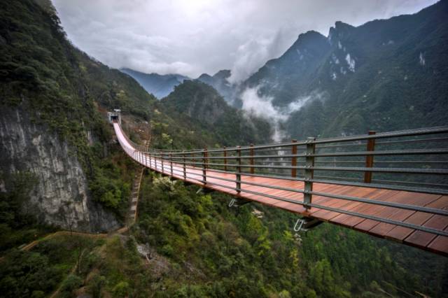 其中,龙缸天坑享有“天下第一缸”的美誉。云端廊桥,则是世界最长悬挑玻璃廊桥(比美国科罗拉多大峡谷玻璃廊桥悬挑长度还长5.34米)。