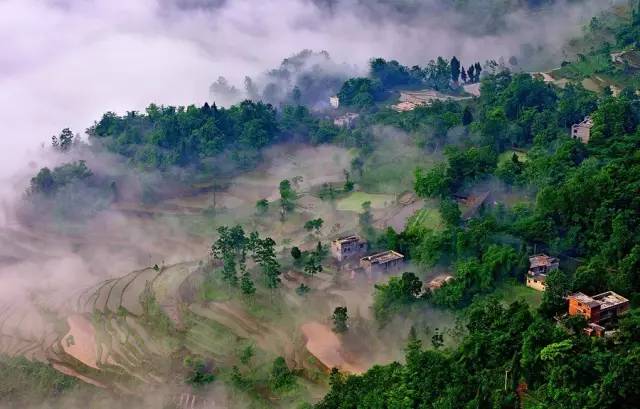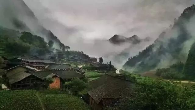 清晨一丝薄雾在寨前屋后如白绢般萦绕,那古老的吊脚楼若隐若现,郁郁葱葱的田园雾气腾腾,仿佛这就是一个跌落人间的仙境。