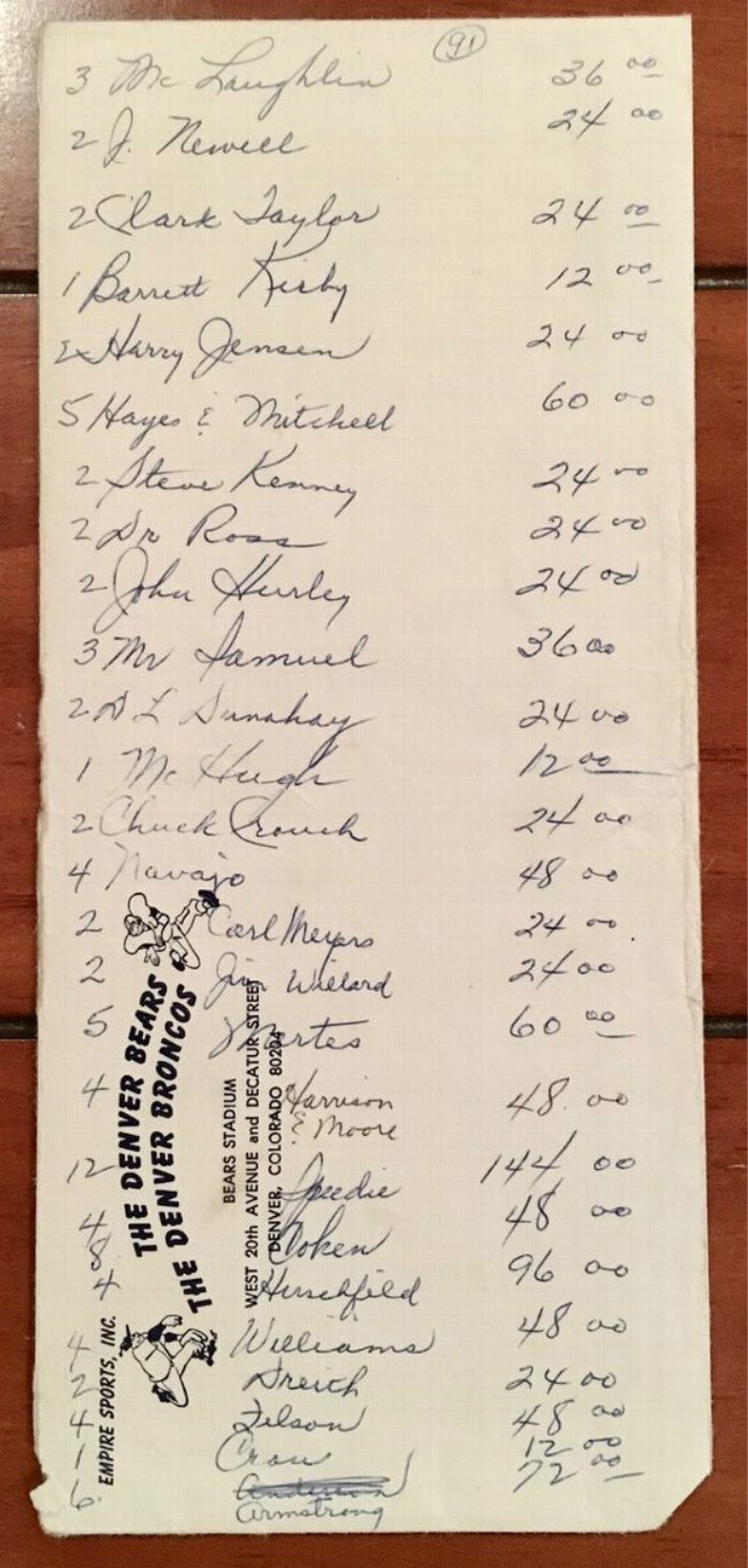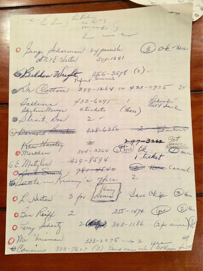 那么究竟是谁得到了这些门票呢?其中有大约一半的人的名字被记录在了一份写到了野马队信封的名单上——并不是官方的文件,但是至少保留在了这些文件中。这份名单中记录了许多名字,支付的金额则都是12美元,而这个信封似乎是用来保存购票者支付的现金和支票的。在这份名单中,有两张门票给了一位名叫“罗斯医生”的人,据推测可能是之前我们提到过的在手写申请信里表示自己“经历过长时间苦痛”的托马斯·罗斯。