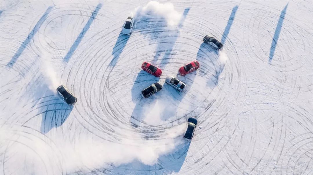 在结了冰的吉林星星哨水库上,奥迪教练的规定简单而粗暴:这里只允许横著走.....