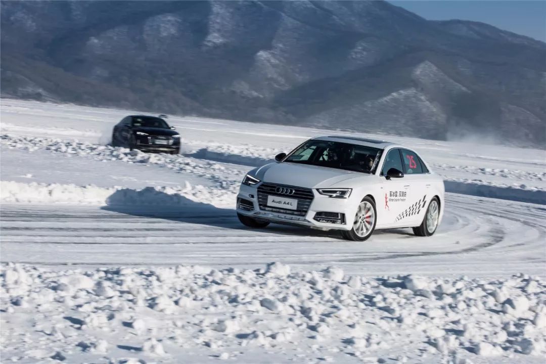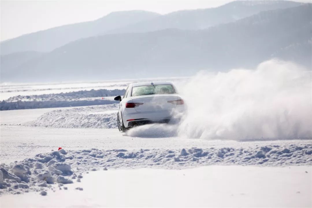 说真的,在低摩擦的冰面上要让车辆直行还真是不容易,稍微加深油门輪胎很容易逾越抓地力极限,培训用的A4L 45TFSI动力相当强劲,加上新一代quattro驱动特性更偏向后轮,即便已经换上雪胎,我们还是可以轻易地让动态失去平衡。