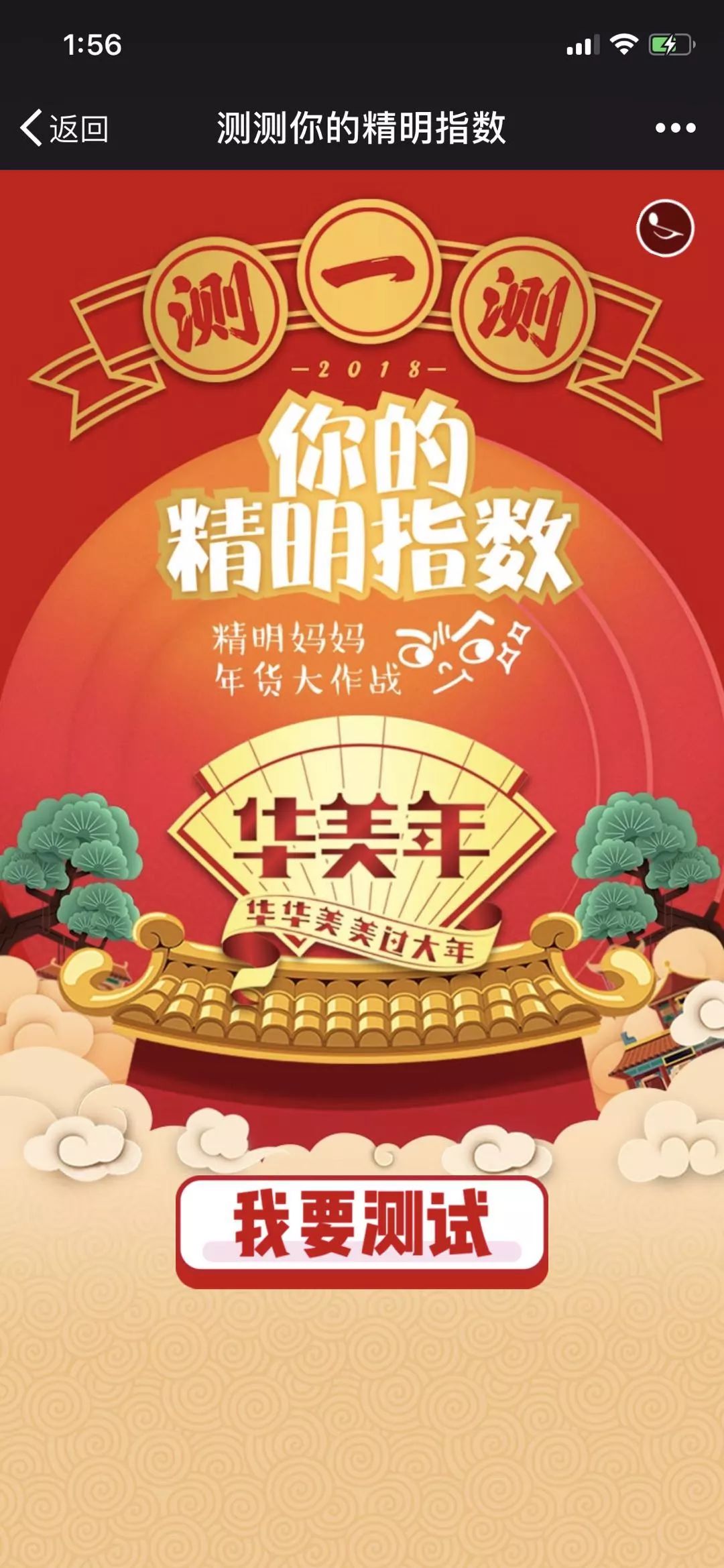 当然如果你是女士测试的话就没什么问题了,我只是好奇参与一下,不过这个H5的发起方华美食品营销的主要群体也不是我这样大男人,而是以妈妈群体为主的目标消费人群,仔细搜索研究了一下,并拆解此次华美食品春节营销,与君分享:
