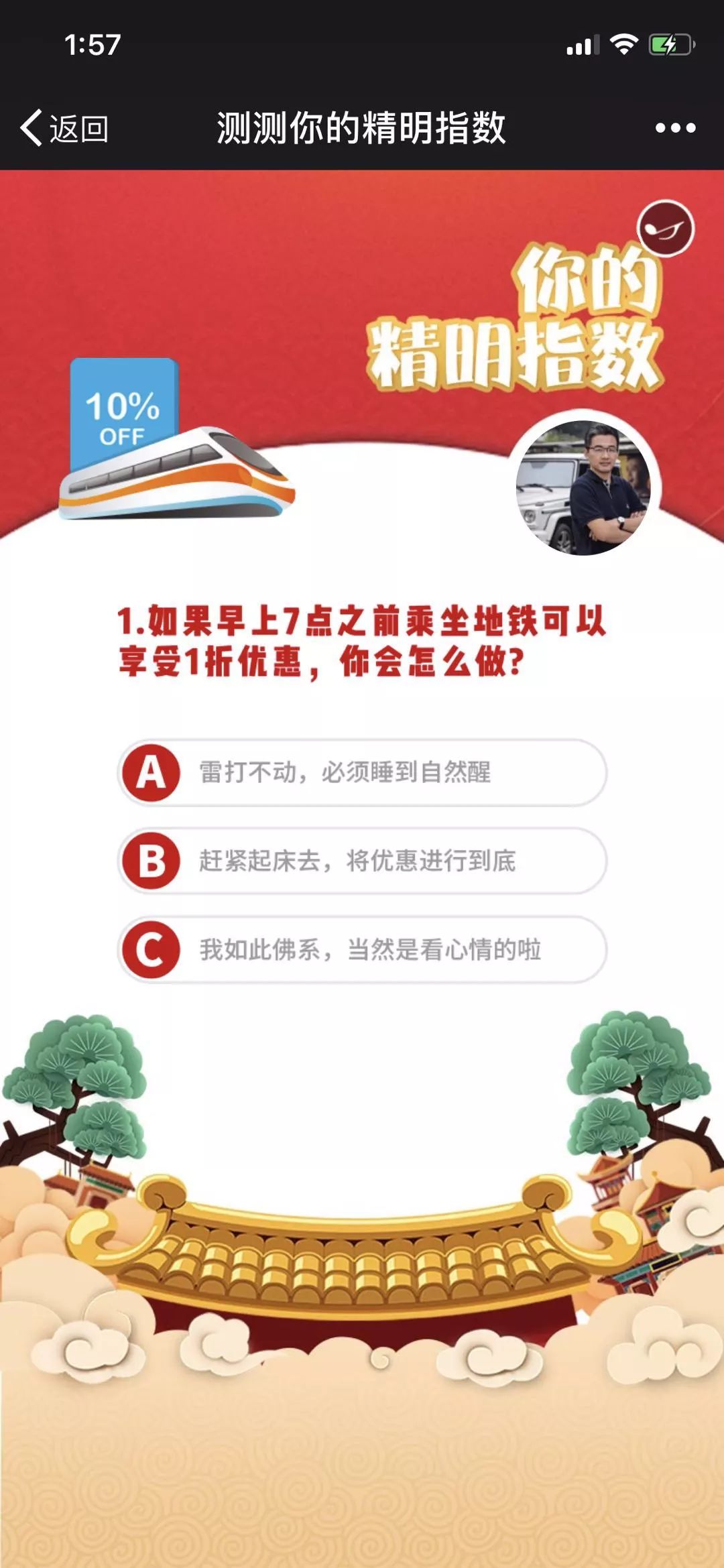 2、H5测精明指数:H5的引爆主要以微信群、朋友圈为主,测试类H5比较容易吸引用户参与进去。