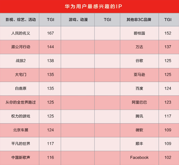 因为按照《今日头条手机行业白皮书》(以下简称《白皮书》,《今日头条手机行业白皮书》可在文末点击原文链接,或者在公众号后台回复“白皮书”获得。)的“手机用户感兴趣IP”反馈来看,华为手机用户和《人民的名义》、《白鹿原》,vivo用户和《楚乔传》,OPPO用户和《三生三世十里桃花》、小米用户和《乡村爱情》都有强关联。
