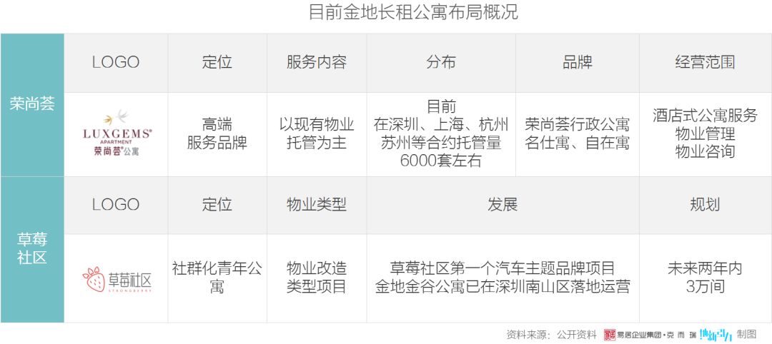 据了解,金地集团在长租公寓领域分为地产和商置两个条线,分别运作的是荣尚荟和草莓社区。 2015 年,荣尚荟品牌完成了从服务品牌到公寓运营的品牌外延扩展,推出自在寓、名仕寓、荣尚行政公寓三大公寓品牌,目前在深圳、上海、杭州、苏州、南京、武汉等多个城市运营。