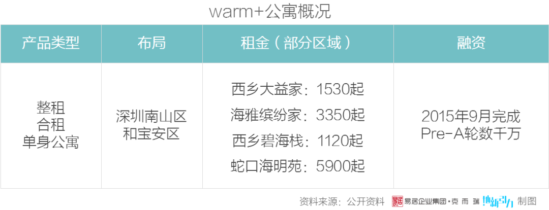 warm+ 公寓是一家专为都市青年群体提供长租公寓服务的新兴移动互联网公寓运营商,目前在深圳的南山、宝安区拥有多栋集中式独立公寓,同时也提供整租、合租和单身公寓等产品。