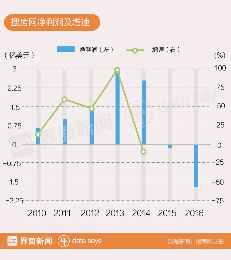 此后,搜房网股价暴跌,业绩转亏,跌落神坛。