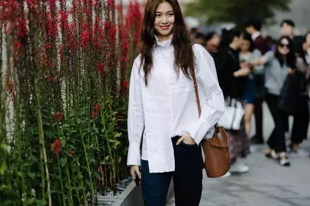 白色的衬衫文艺气息满满,优先选一些比较有设计感的款式。