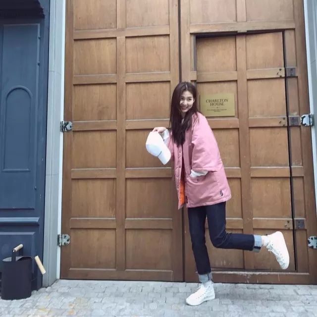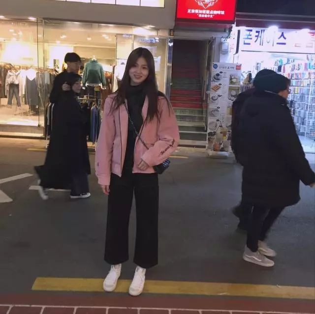 粉色和基础色的搭配甜而不腻,脚踩运动鞋随性休闲~
