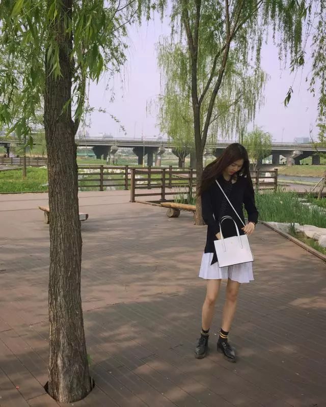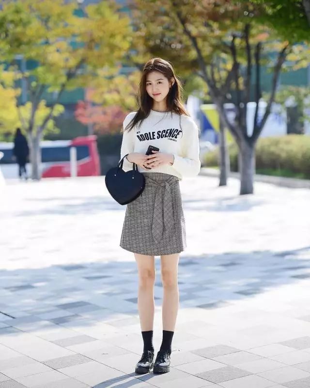 还可以搭配格纹裙和小黑靴,超级酷啊~