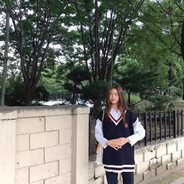 和毛衣组合也是很多人get的穿法,搭配条纹针织马甲超级文静,搭配一件粉嫩的毛衣就可以化身美少女啦。