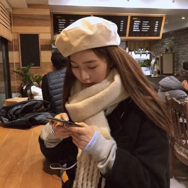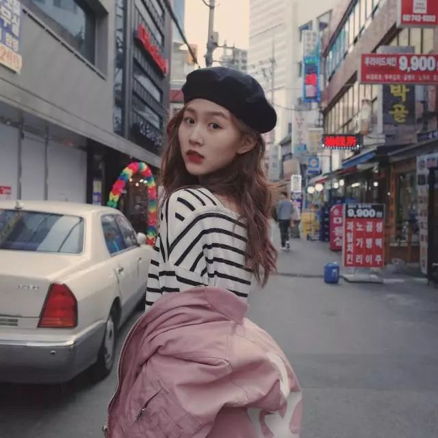 贝雷帽搭配大衣和条纹衫,保暖时髦两不误。