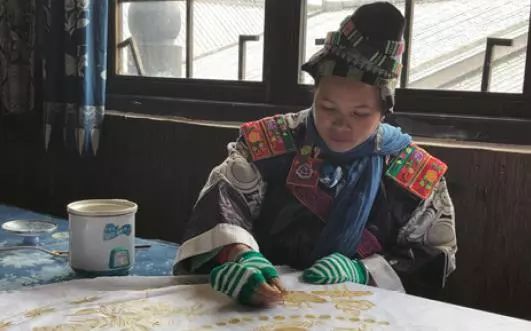 43岁的苗族妇女杨而报浪指甲里透着洗不掉的蓝色。她是丹寨万达小镇上一家名为“欧报浪蜡染体验馆”的老板,还入选了国家非物质文化遗产传承人名录。六七年前杨而报浪曾在老家村里办过一家蜡染合作社,没有成功。丹寨小镇招商时,她想,小镇上开店应该能面向更多客户,于是争取到一家两层楼的店铺。