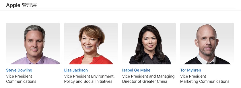 从苹果官网的管理层简介页面可以看到,葛越和人力副总裁Deirdre O’Brien等人处于苹果管理层的“第二梯队”。不过由于她直接向CEO蒂姆·库克和COO杰夫·威廉姆斯(Jeff Williams)汇报工作,实际能参与的决策更多。