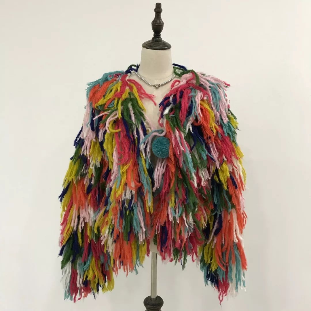 且不说颜色一点都不鲜艳,色彩分布也毫无规律,说它是手工拖把都并不过分。穿出门吗?我觉得更像是披着孔雀毛的“‘野鸡”~