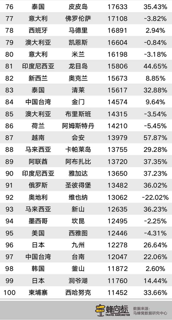 云南、海南等气候温暖的南方目的地涨幅明显,预计2018年春节期间将会有大量中国游客前往,其中云南西双版纳的热度涨幅高达43.3%,海南三亚的热度涨幅高达35.6%。