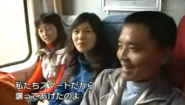 镜头里也有因为受金融危机影响工厂倒闭,五年来第一次可以过年回家的中年人和为了让买站票的乘客一起挤着坐,笑着说自己苗条的年轻女孩。