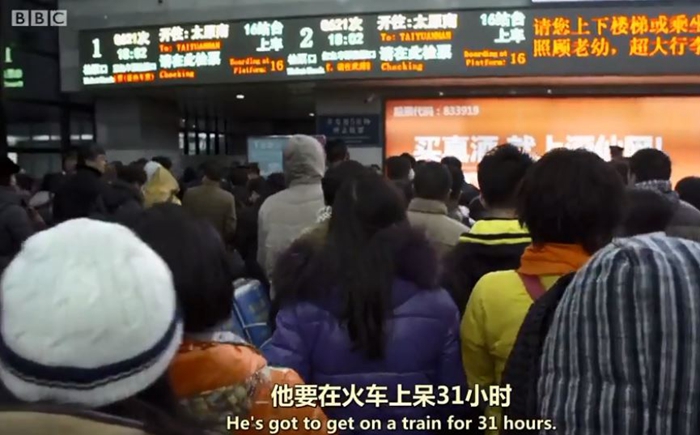 在这时,火车站检票处已经有了自动闸机口,再也没有了2009年镜头中一拥而上的景象;北京西站庞大的调度室甚至被记者形容为“像阿波罗13号控制室”。但此时,坐火车回家依然是一个漫长的过程,有的乘客需要31个小时,让记者惊奇不已。