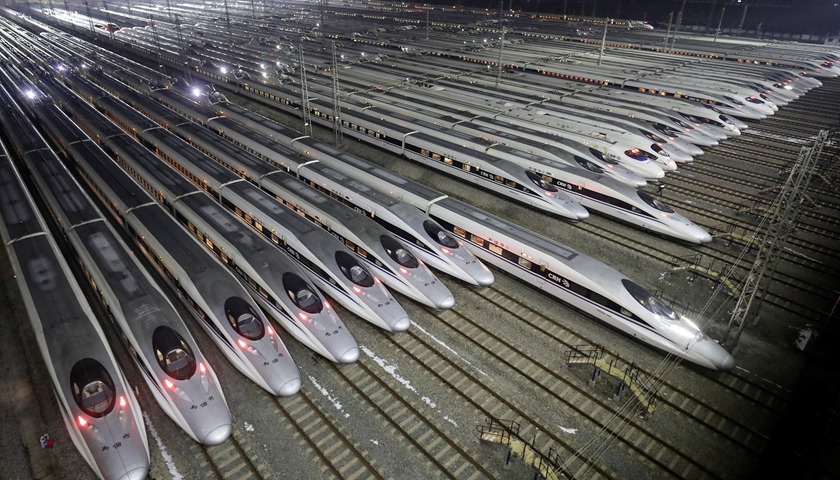 《国际财经时报》和《每日邮报》则在春运报道中放出了多组高铁停靠在维修基地的照片,《每日邮报》直接用“难以置信”来形容高铁待发的景象。