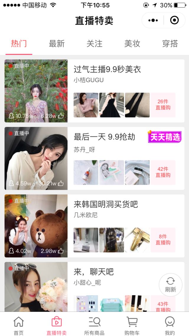 蘑菇街小程序直播
