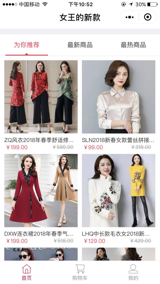 和拼多多情况类似的还有女王的新款,这家以女装特卖为标志的新兴电商平台通过微信小程序获得了超过千万的用户,这些用户7成以上都是30岁到50岁之间的分布在三四线城市的中年女性。除了通过小程序上的拼团裂变工具获取淘宝京东之外的增量用户,小程序相比H5网页的更好的体验更大大提高了转化率。