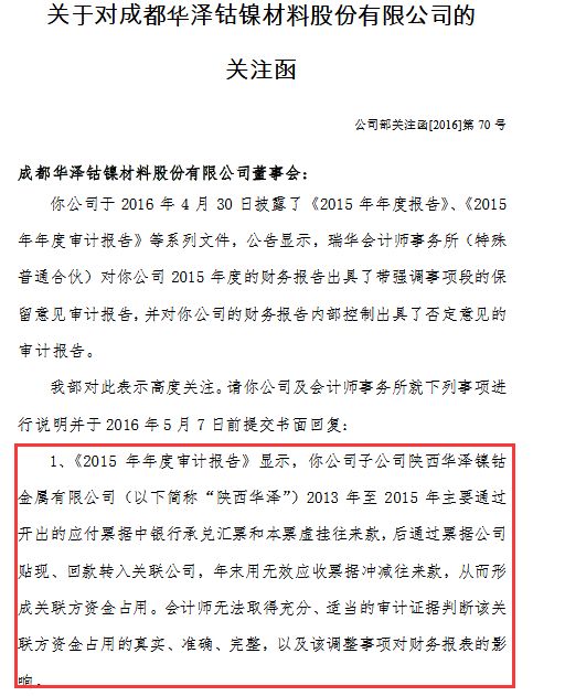 基金君粗略算了下,华泽钴镍2013至2015年上半年无效票据占应收票据的比重均在99.5%以上,且比重逐次增加。事实上,深交所早在2016年就对华泽钴镍发过一份关注函,函件内容中披露了更多造假细节。