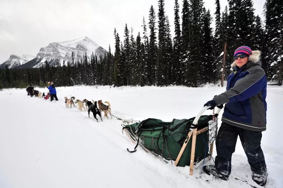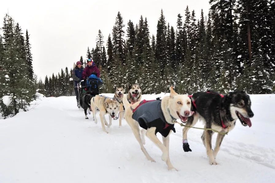 Kingmik Dogsled Tours 是班夫国家公园内唯一一家经营狗拉雪撬活动的公司,分30分钟体验、1小时劲爽、和2小时自驾3种,2小时自驾还可以在训狗师的指导下自己驾驶雪撬。加拿大特别注重动物保护,5至6只经过专业训练的狗拉一辆雪撬,特制的轿厢让其在雪地上的阻力达到最小,出发前还要给狗狗们穿上鞋。