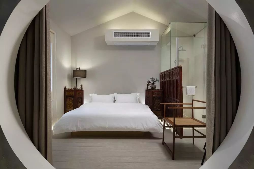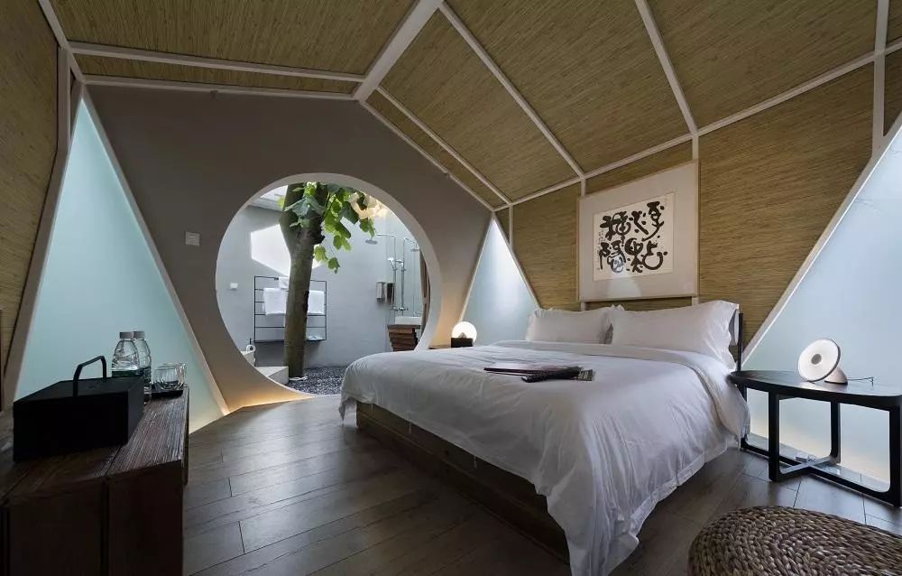 浮点·禅隐客栈位于锦溪古建群落中,设计师在保留老房子神韵的的基础上加以改造,圆形拱门、青砖墙、老瓦片营造古朴原生的气息,竹枝、竹桠则勾勒出了乡野的意境。