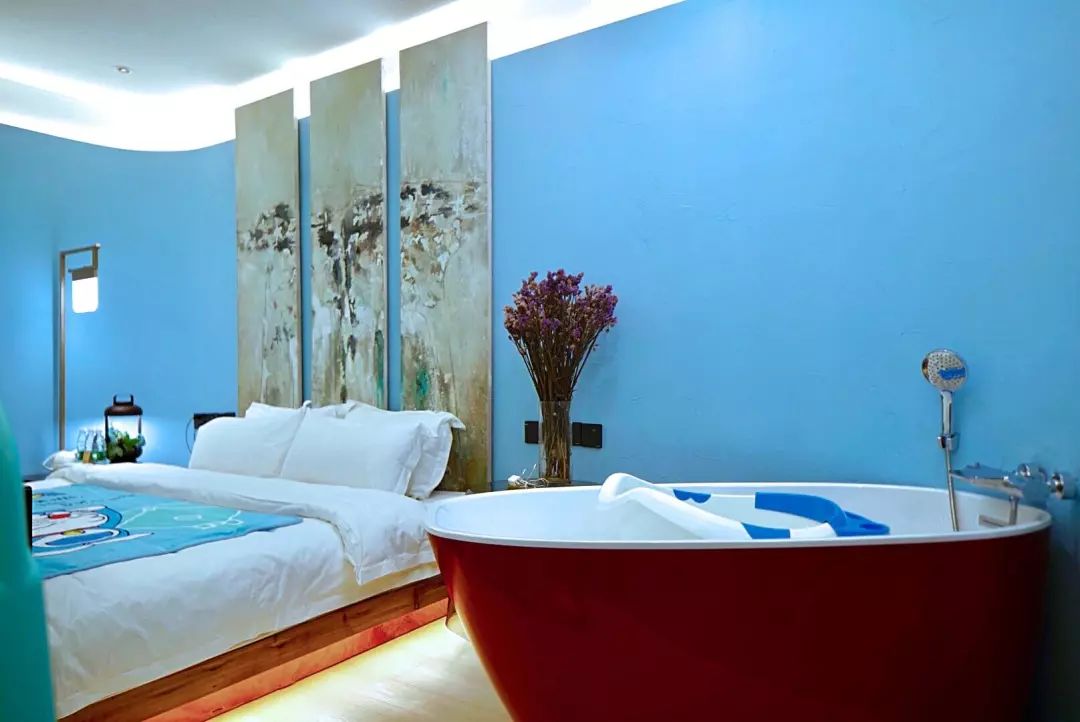 这是民宿主人兼设计师万浮尘送给女儿的礼物。四个房间风格各异,色彩的碰撞创造出一片活力四射的天地。