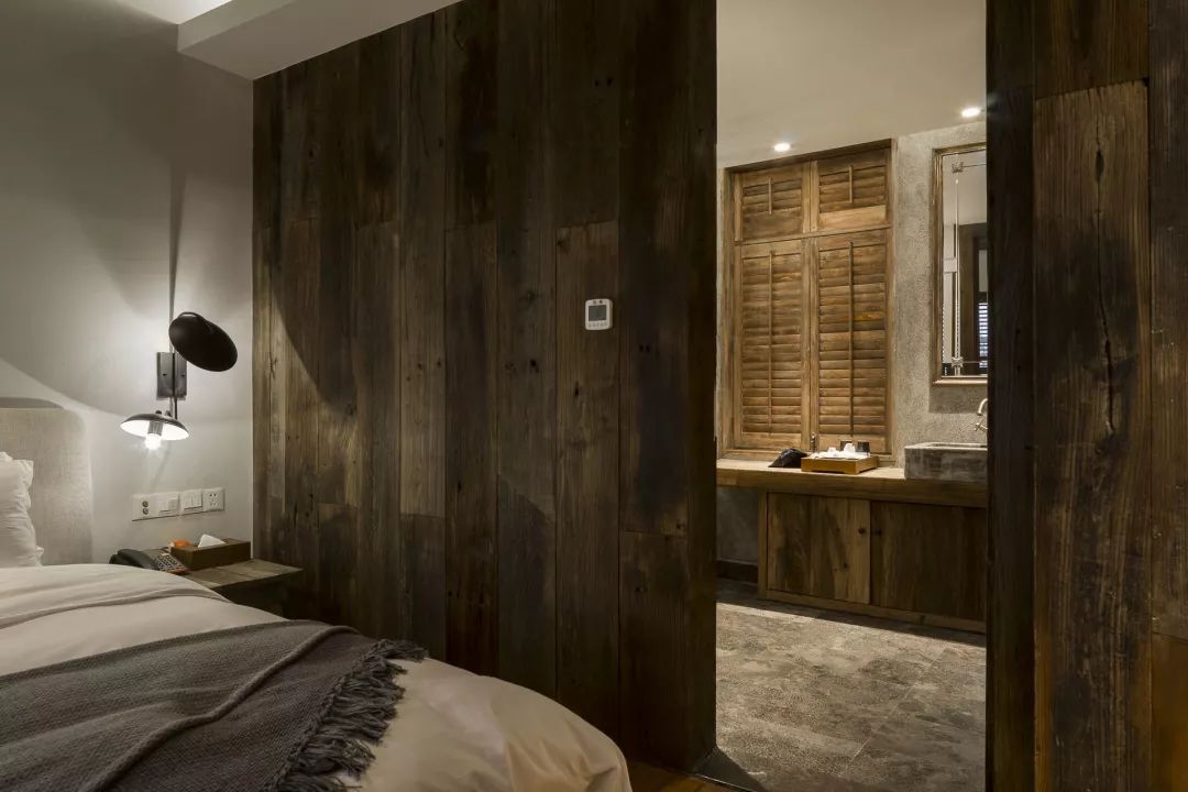 从全国各地收来的老木头、青石板,被细心地布置在酒店的各处角落。