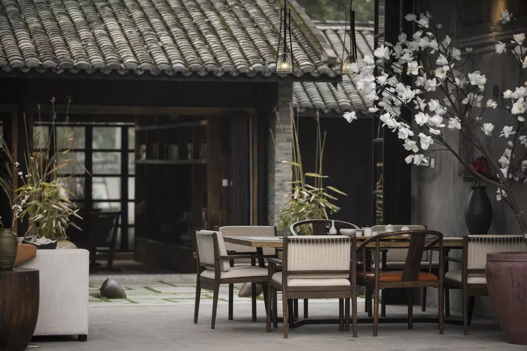 当白天的喧嚣逐渐被黑瓦上的炊烟取代,在古镇的边缘,你会发现这样一处精致的院落。始建于清末,原为庞氏家族的故居,现由罗丁先生出巨资在原址修复,不计代价地打造了这处诗意空间。